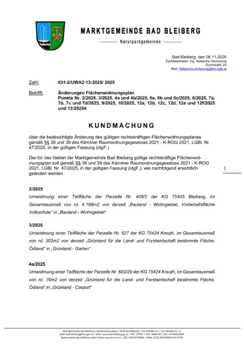 Kundmachung über die Änderung der Flächenwidmung 2-13/2025