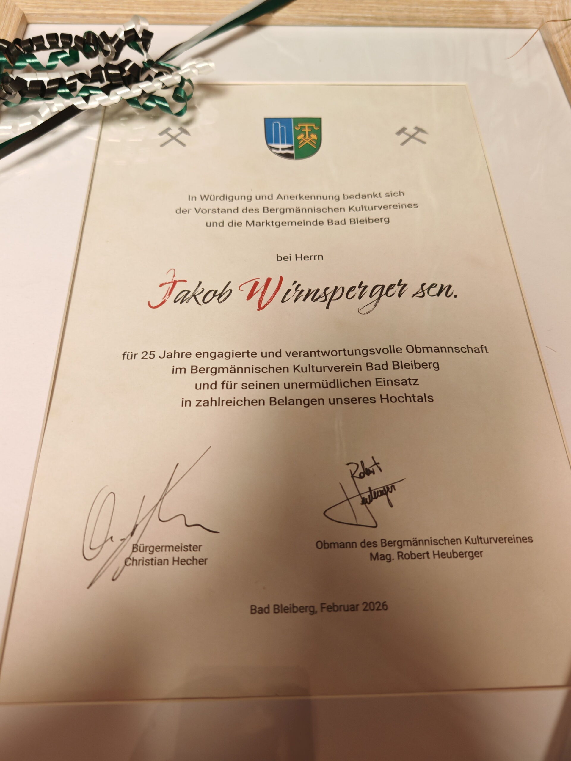 Nach 25 Jahren als Obmann des Bergmännischen Kulturvereins Bad Bleiberg hat Jakob Wirnsperger mit Jahresende aus gesundheitlichen Gründen seinen Rücktritt erklärt. Unter seiner Führung wurden bedeutende Maßnahmen zum Erhalt der Bergmannskultur umgesetzt.