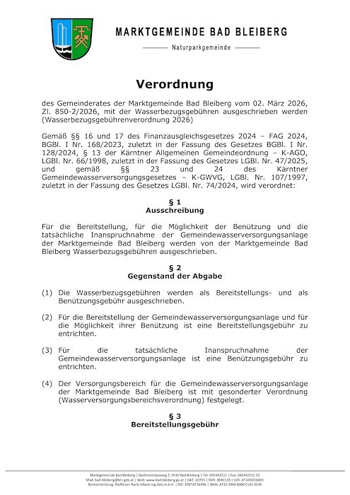 Wasserbezugsgebührenverordnung 2026